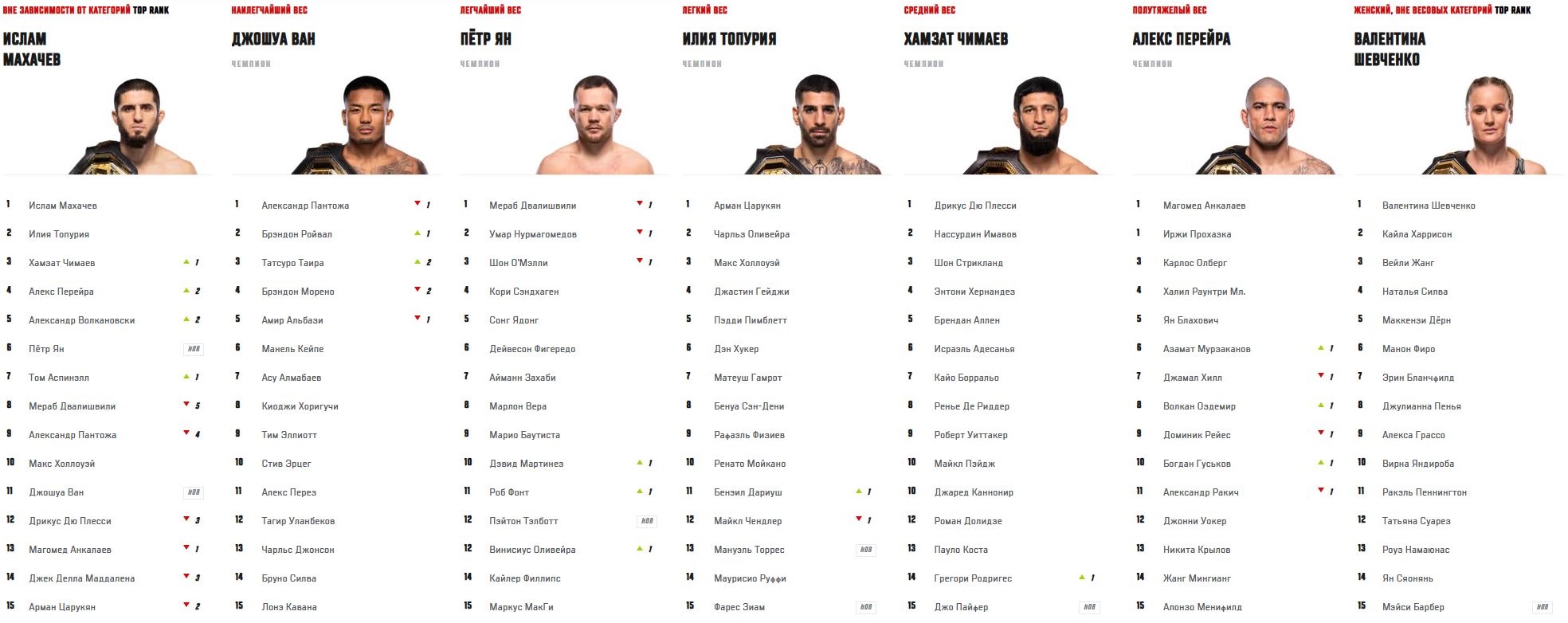 Легчайший вес: Двалишвили возглавил рейтинг, Пэйтон Тэлботт дебютировал на 12 строчке.