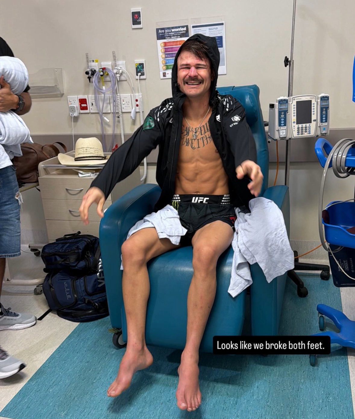 После боя команда Диего опубликовала это фото с подписью «Похоже, мы сломали обе ноги».